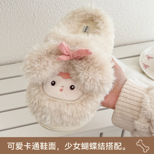 卡通毛绒棉拖鞋居家保暖情侣毛拖鞋冬季防滑可爱透气棉拖女士批发