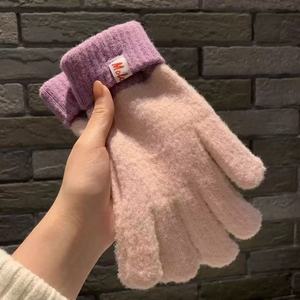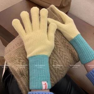 撞色针织手套女2025年新款秋冬季保暖防寒分指可触屏骑行潮流五指