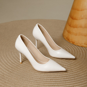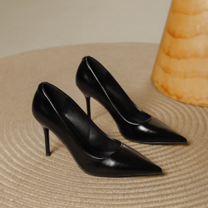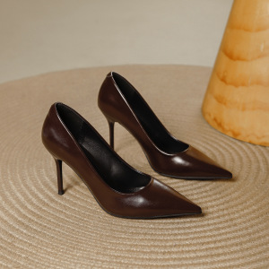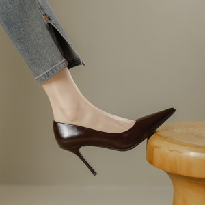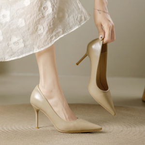 简约高跟鞋女2025秋季新款尖头浅口细跟舒适软皮职业百搭工作单鞋