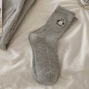 suxinaimin春秋款点子纱袜子女卡通小狗中筒袜ins潮可爱吸汗女袜