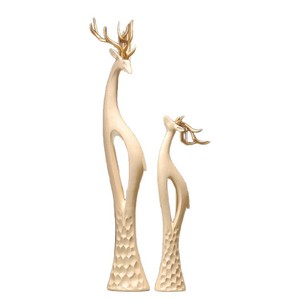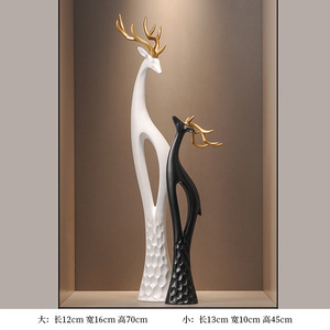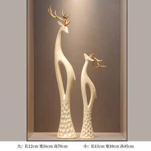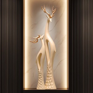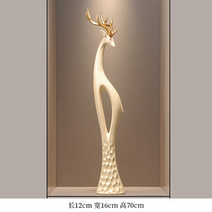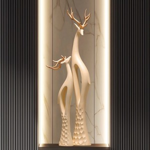 入户玄关细长竖高招财鹿装饰摆件高级感小众客厅电视柜雕塑艺术品