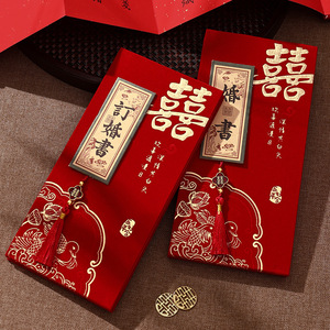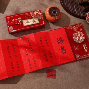婚书订婚书中式送日子喜贴下聘书结婚纪念提亲定日子喜帖奏折婚书