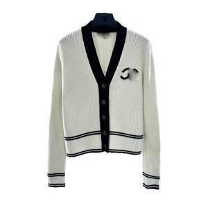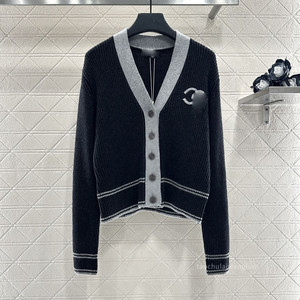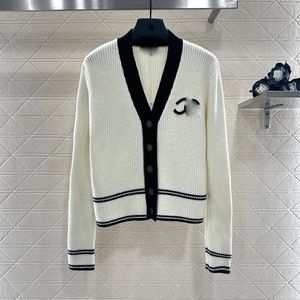 撞色V领针织开衫女 简约慵懒风显瘦百搭单排扣长袖上衣 CW82282