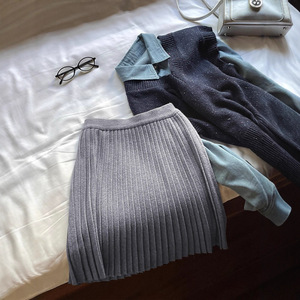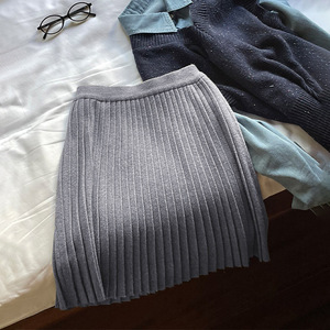 强烈推荐!慵懒风针织百褶短裙女秋冬新款高腰垂感打底a字半身裙