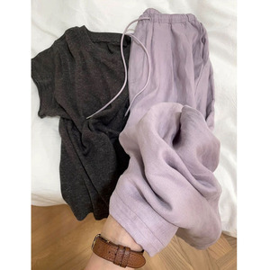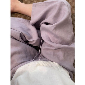 自留款推荐~vocal!!超好看淡紫色亚麻裤女春秋季直筒慵懒休闲裤