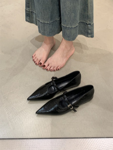 法式玛丽珍鞋2025年新款尖头t字扣带浅口黑色百搭平底单鞋女鞋子