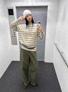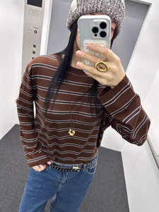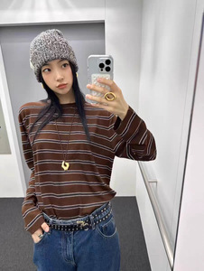 现货2025秋季新款韩版复古气质显瘦圆领条纹桑蚕丝羊毛针织衫毛衣