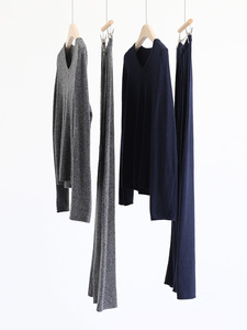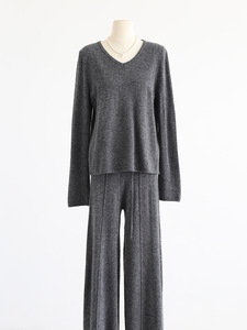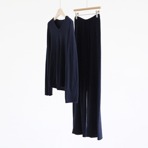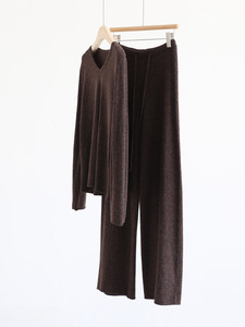 秋冬韩版曼陀罗V领长袖针织衫高腰抽绳慵懒针织阔腿裤两件套套装