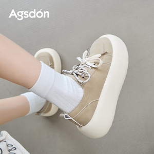 奥古狮登休闲鞋女2025新款秋季厚底大头面包德训鞋复古运动小白鞋
