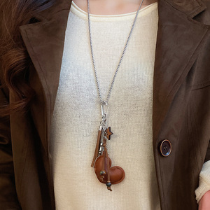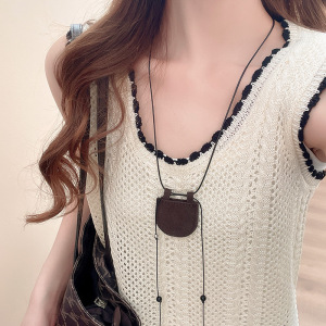 休闲风皮革绳迷你小包吊坠项链时尚百搭高级感毛衣链个性潮流项饰