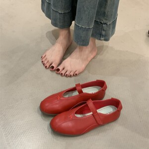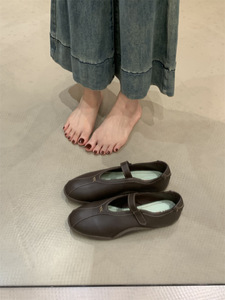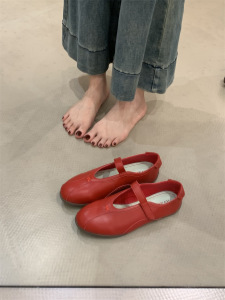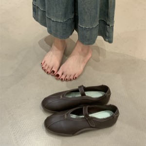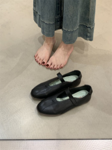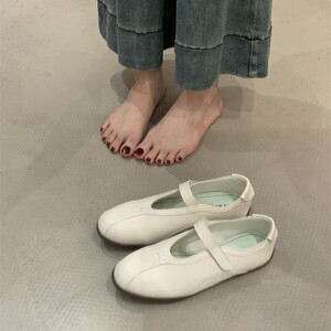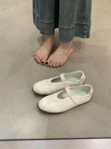 法式平底玛丽珍鞋女2025年春秋新款气质百搭一字带魔术贴小皮单鞋