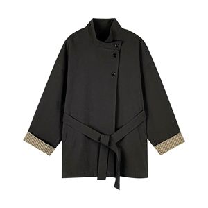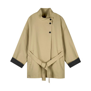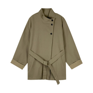 MOXI十三行女装2025秋季新款撞色立领高级感中长款女士风衣外套女