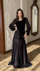 亚马逊欧美跨境2025年秋季新款高贵优雅复古长袖长裙连衣裙女