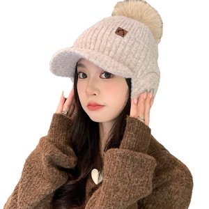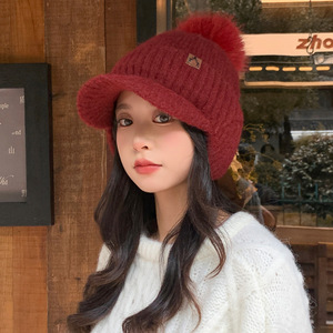 韩系百搭皮标针织毛线帽秋冬季可爱毛球防寒护耳帽户外休闲保暖帽