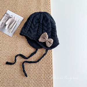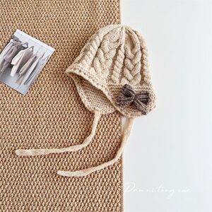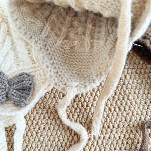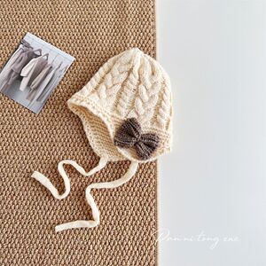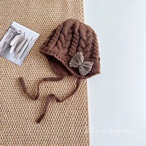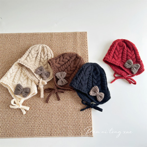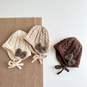儿童帽子时尚系带蝴蝶结针织帽秋冬新款宝宝保暖防风毛线帽护耳帽