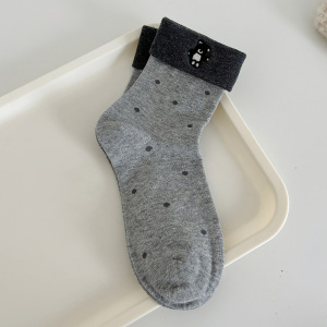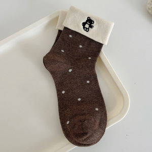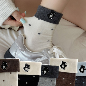 25新款秋冬袜子女可爱翻边袜卡通小熊可爱棉袜百搭ins潮春中筒袜