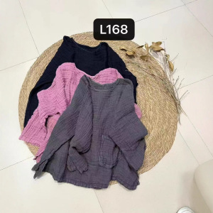 2025秋 韩版宽松复古个性肌理麻圆领套头T恤衫百搭单兜上衣女L168