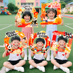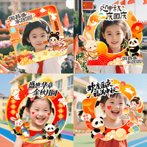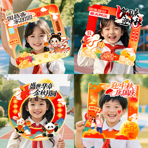 中秋国庆节氛围场景布置装饰教室班级活动拍照打卡道具手持举相框