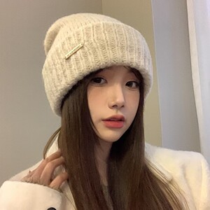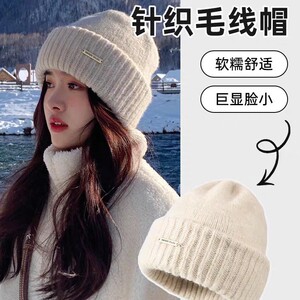 帽子女秋冬季新款护耳堆堆针织保暖大头围包头冷帽冬显脸小毛线帽