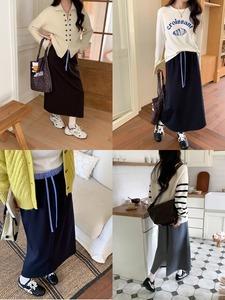 3th Morning 懒人日常 撞色拼接双腰头休闲直筒半身裙ZY3352
