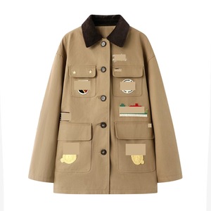 现货2025秋季新款宽松休闲卡通动漫字母刺绣工装风外套2530W11526