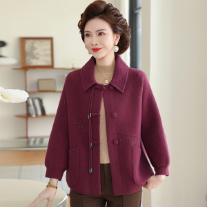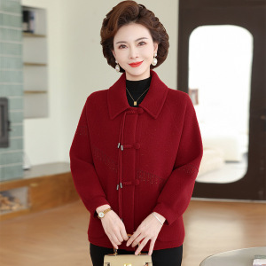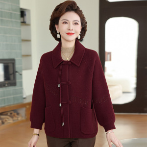 中老年女韩国绒时尚洋气国风开衫2025秋冬新款妈妈装针织衫外套