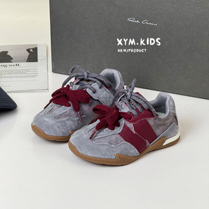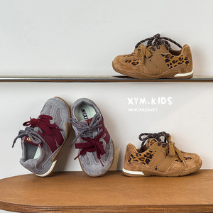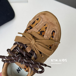 2025年秋季新款儿童休闲鞋时尚豹纹复古N字双系带男女童德训鞋