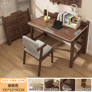 实木折叠书桌家用学生电脑桌卧室小户型学习桌床边写字桌简易桌子