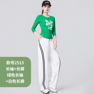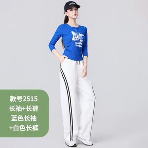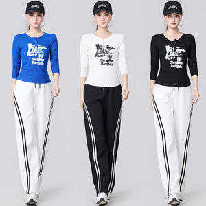 2025年早秋新款时尚百搭字母涂鸦修身T恤运动宽松显瘦弯刀裤套装