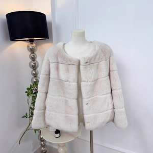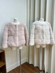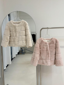 绒绒奶兔矜贵少女 西班牙A级獭兔显瘦圆领2025网红新款皮草外套
