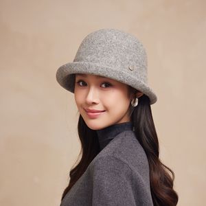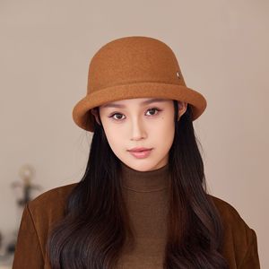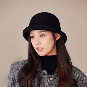 秋冬季复古羊毛渔夫帽子新款女气质简约盆帽卷边时尚显脸小帽子潮