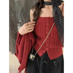 秋冬韩系慵懒风麻花针织两件套装背心+领宽松简约纯色开衫外套女