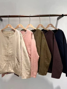 25年秋款衬衫外套上衣长袖双层纱外套无领设计款外套时尚减龄显瘦