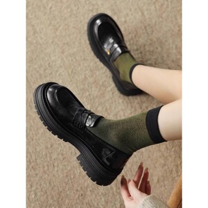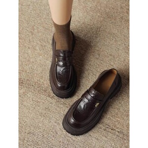 牛皮版法式真皮厚底小皮鞋女英伦风一脚蹬懒人金扣乐福鞋粗跟单鞋