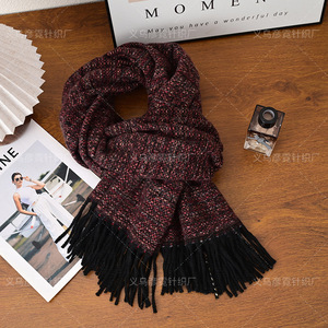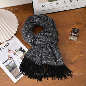 秋冬韩版氛围感围巾女复古流苏羊羔毛包芯纱柔软围脖户外防寒保暖