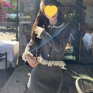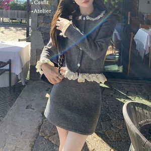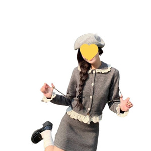 韩系小香风减龄套装2025秋冬新款娃娃领针织衫包臀裙小个子两件套