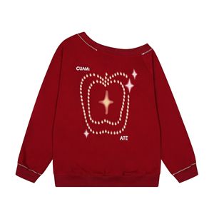 Fudge Pink 25秋季New美式复古辣妹个性印花设计斜肩套头卫衣