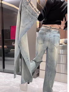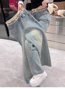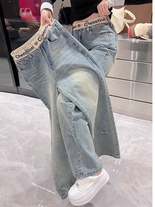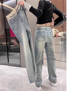 窄版直筒牛仔裤女2025新款春秋季薄款裤子大码胖mm显瘦宽松阔腿裤