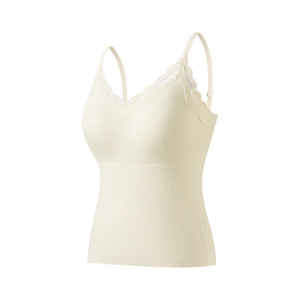 秋冬新款加绒发热带胸垫保暖山羊绒无痕背心7A抗菌打底上衣女吊带