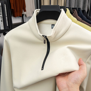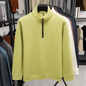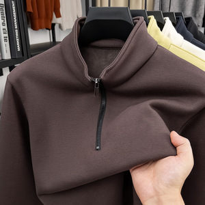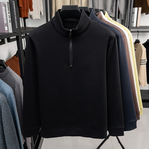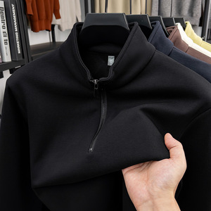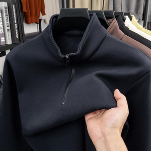 高端卫衣男长袖t恤冬季2025新款纯色半高领拉链休闲商务打底衫