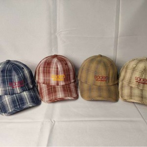格纹复古透气棒球帽子夏季显脸小英文刺绣遮阳百搭大头围鸭舌帽潮