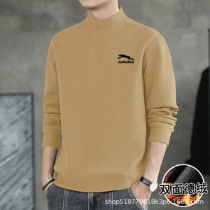 男士双面德绒打底衫内搭潮流百搭半高领秋冬季保暖长袖t恤上衣