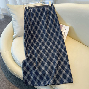 黑色格子半身裙女秋冬季2025新款今年流行的韩版中长裙a字包臀裙