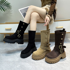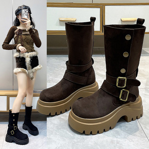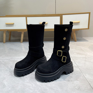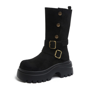 英伦风厚底增高马丁靴女2025年秋冬季新款小个子显瘦中筒骑士短靴