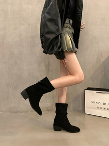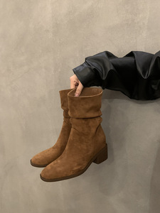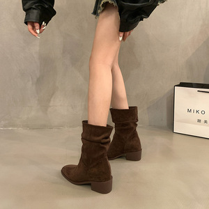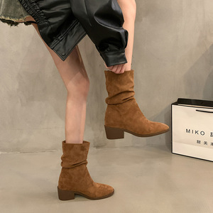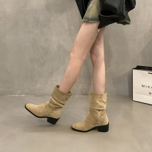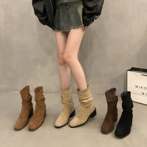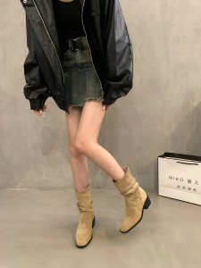 复古堆堆靴女2025年夏秋新款薄款卡其色马丁靴粗跟拍照牛仔短靴女