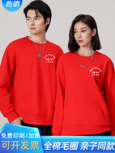 亲子款全棉薄款圆领卫衣定制刺绣印logo纯棉毛圈广告卫衣活动服装