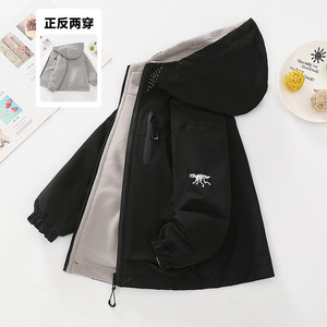 男童冲锋衣童装休闲外套秋冬加绒新款中大童防水儿童双面穿7岁16