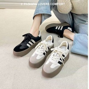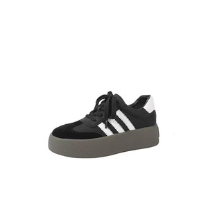 全皮德训鞋女款内增高春秋新款三道杠小个子厚底休闲阿甘鞋女