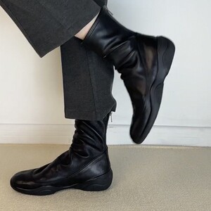 牛皮版~圆头真皮厚底复古黑色短靴女秋冬倒靴弹力瘦瘦靴子马丁靴