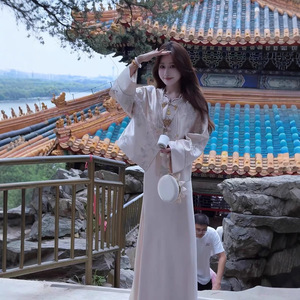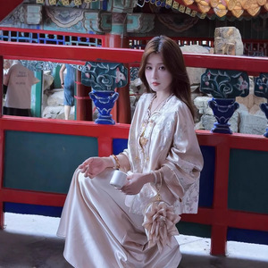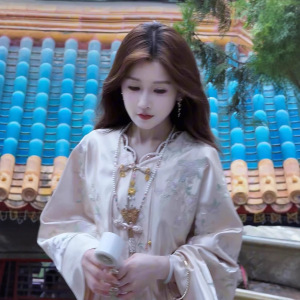 婷婷水仙新中式光泽感刺绣套装女早秋新款国风上衣缎面半身裙